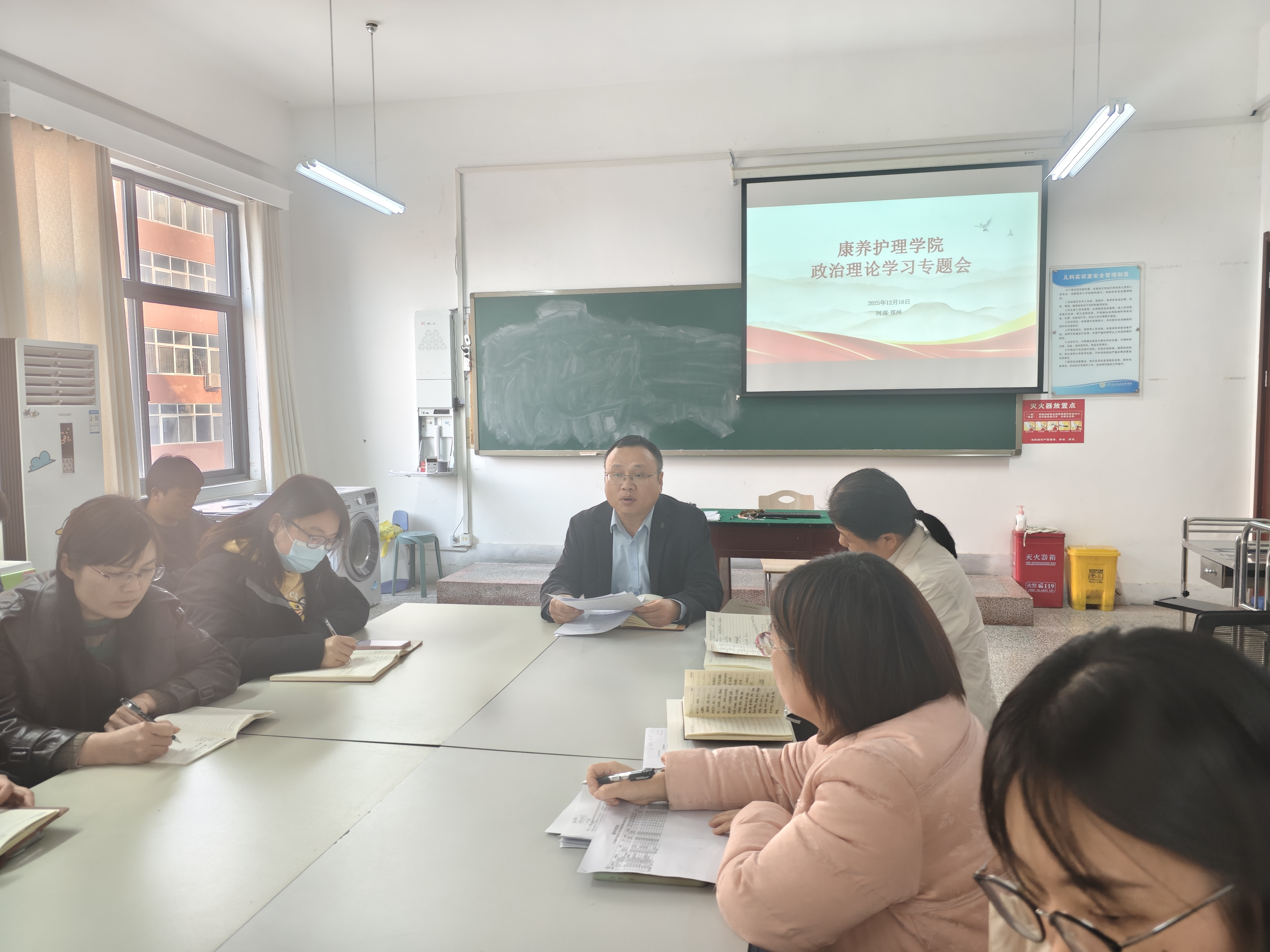最后,张忠勇对本次专题学习进行了总结。他充分肯定了全体教职工的学习热情和认真态度,并鼓励大家将所学知识转化为实际行动,不断提升自身的政治素养和业务能力。同时,他展望了学院未来的发展方向,表示将继续加强政治理论学习,深化教育教学改革,努力打造一支政治素质过硬、业务能力精湛的教职工队伍,为康养护理事业的发展贡献更多智慧和力量。