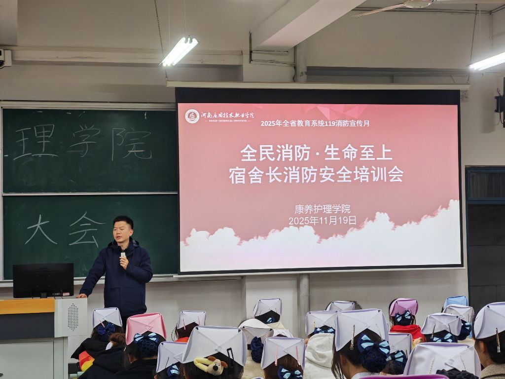 为进一步强化康养永利集团3044am学生的消防安全意识,提升应对突发应急处置与自救互救能力,切实筑牢校园安全防线,11月19日晚,辅导员梁海洋面向学院全体宿舍长,开展了一场兼具专业性与实用性的消防安全培训会。