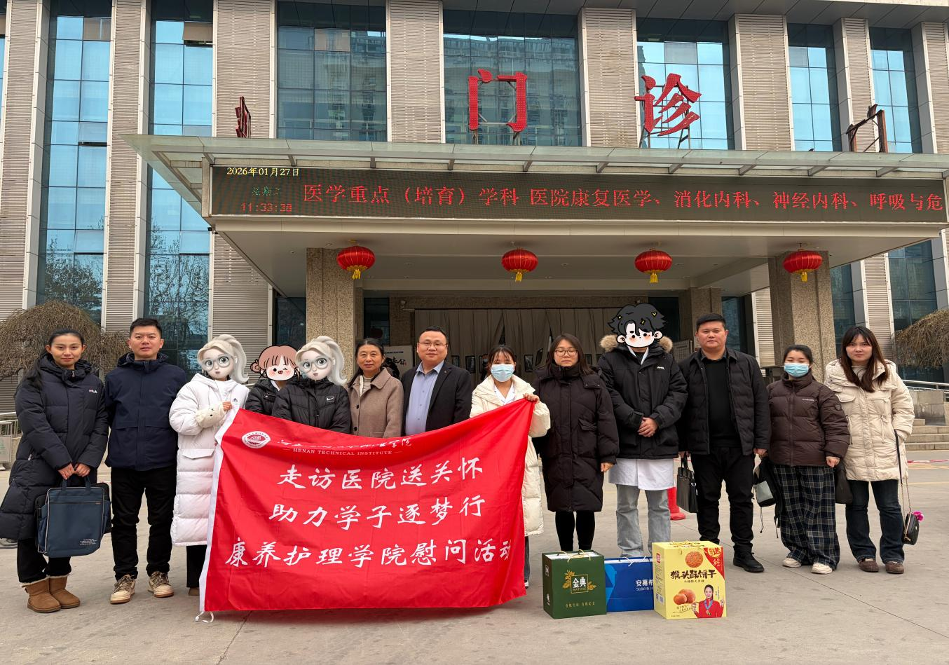 为深入贯彻落实立德树人根本任务,切实关心关爱实习阶段家庭经济困难学生的学习生活与职业发展,2026年1月27日,康养永利集团3044am教师团队在党总支书记张忠勇、院长王风云的带领下分赴郑州大学第二、第三附属医院、郑州市第三人民医院、郑州市中心医院、河南中医药大学第一附属医院等多所三甲医院,开展走访慰问岗位实习贫困生活动,将学院的温暖与牵挂精准送达。