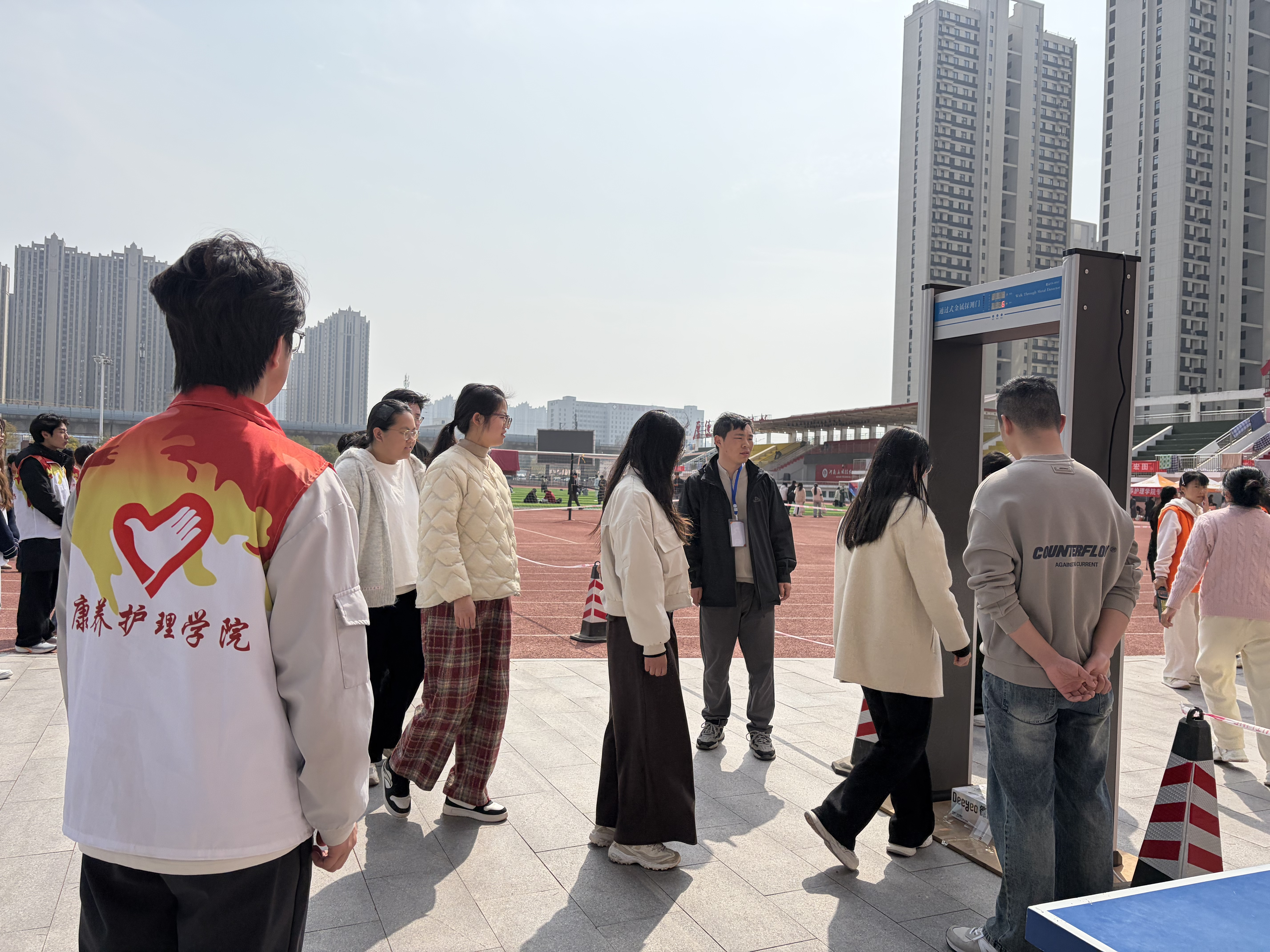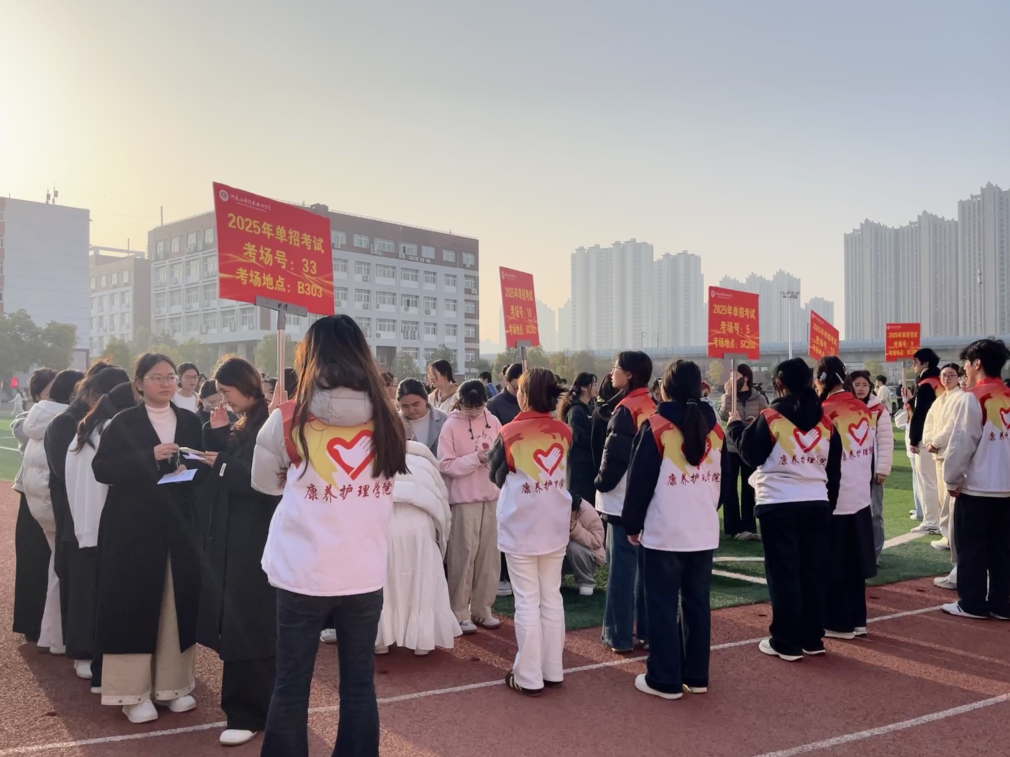 考试当日,志愿者们早早来到操场,按班级组织考生有序入场集合,认真引导考生存放手机及个人物品,细致核对考生信息,带领考生有序进入考场。整个过程井然有序、高效顺畅,志愿者们以饱满的热情和严谨的态度,为考生营造了安全、顺利、舒适的考试环境,用实际行动诠释了“奉献、友爱、互助、进步”的志愿精神。而这也正是新时代护理青年职业素养的生动写照。