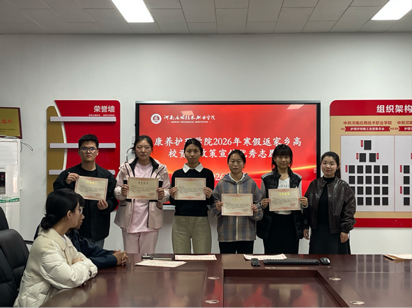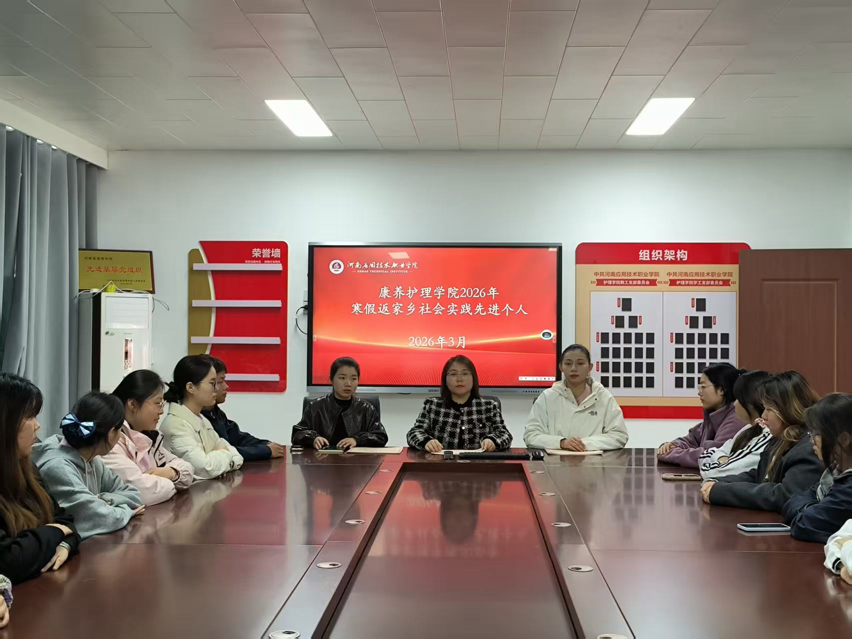 会议伊始,张萌宣读《康养永利集团3044am2026年寒假“返家乡”社会实践先进个人表彰决定》,并勉励全体学子以先进为标杆,主动投身社会实践、深耕家乡服务,在实践熔炉中锤炼过硬本领、强化责任担当。随后,姚颖对同学们在寒假“返家乡”实践资助宣传工作中的优异表现给予充分肯定,同学们化身资助政策“宣传员”,深入社区、乡村传递政策温度,展现了良好的沟通能力与责任意识,也为学院资助工作的落地见效筑牢了基层基础。最后,景淼作总结发言。她首先代表学院向受到表彰的先进个人表示热烈祝贺,对同学们在寒假“返家乡”社会实践中主动担当、积极作为的精神风貌给予赞扬。她指出,“返家乡”社会实践是青年学子了解国情、感知家乡、增长才干的重要途径,也是学院落实立德树人根本任务、深化实践育人的重要载体。同学们以青春之名赴家乡之约,在志愿服务、政策宣讲、基层帮扶、健康科普等岗位上发光发热,既展现了康养护理学子的专业素养与责任担当,也用实际行动诠释了新时代青年“不负韶华、不负家乡”的初心使命。